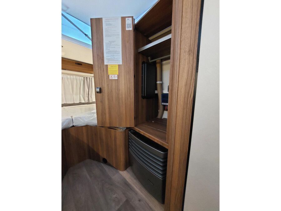 Deze caravan is uitgerust met onderstaande opties:Comfort Pakket Comfortkussen voor de zitgroep voor Designpakket II Serviceluik achter in rijrichting rechts, 80 x 35 cm Stijlpakket Legend Stoffencombinatie Hampton voor uitrustingslijn Legend Technisch toegestane maximum massa naar 1.500 kg Zijwanden, voor- en achterzijde in gladde plaat, kleur Crystal zilver