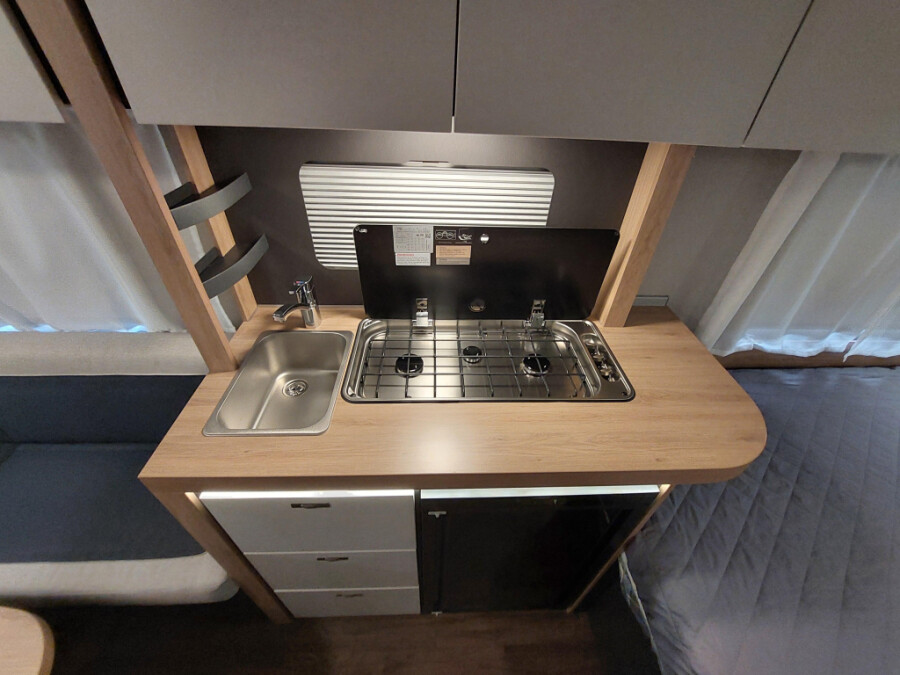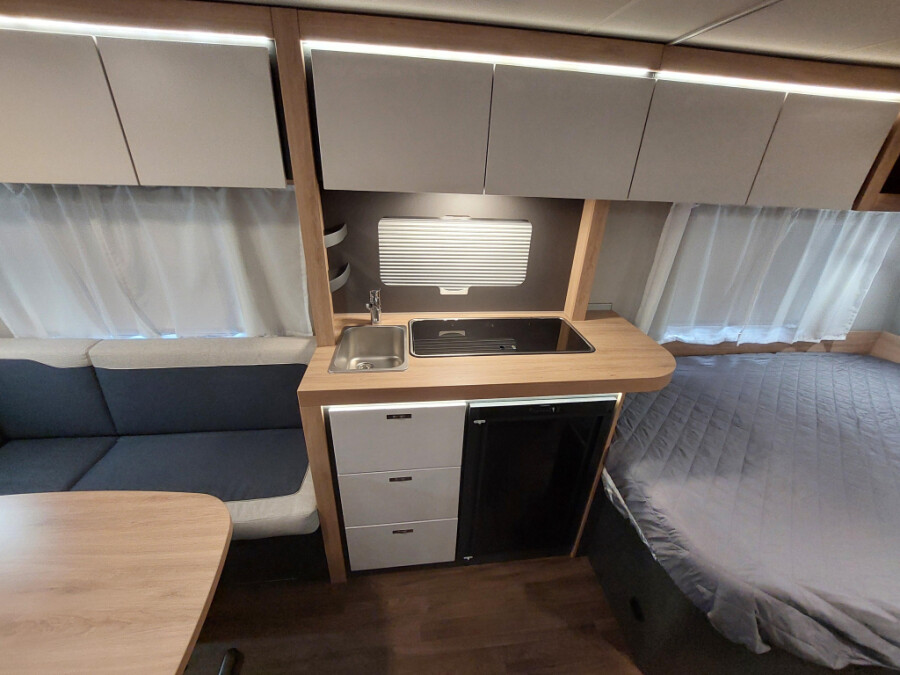Deze caravan is uitgerust met onderstaande opties:Ambiënteverlichting incl. achterwand bekleding keuken in decor van het werkblad Bekledingsstof keuze: ACTIVE ROYAL Combi buitenstopcontact (combi stroom + TV) Design pakket – enkelasser Elektrische vloer bijverwarming tot type 550 EvoPore HRC matras incl. WaterGEL toplaag, alleen vaste bedden Gas pakket Luifel 355 x 250 cm – dakmontage incl. montage kit, wit Niveaumeter voor vers watertank Opbouwdeur KNAUS PREMIUM Openslaand raam (voor) Plus pakket - enkelasser Reservewielhouder in de gasflessenkast Rookmelder Serviceluik 100 x 30,5 cm, achterin rechts Stopcontacten plus pakket Toegestane maximum massa naar 1.600 kg*** (1.800 kg chassis)